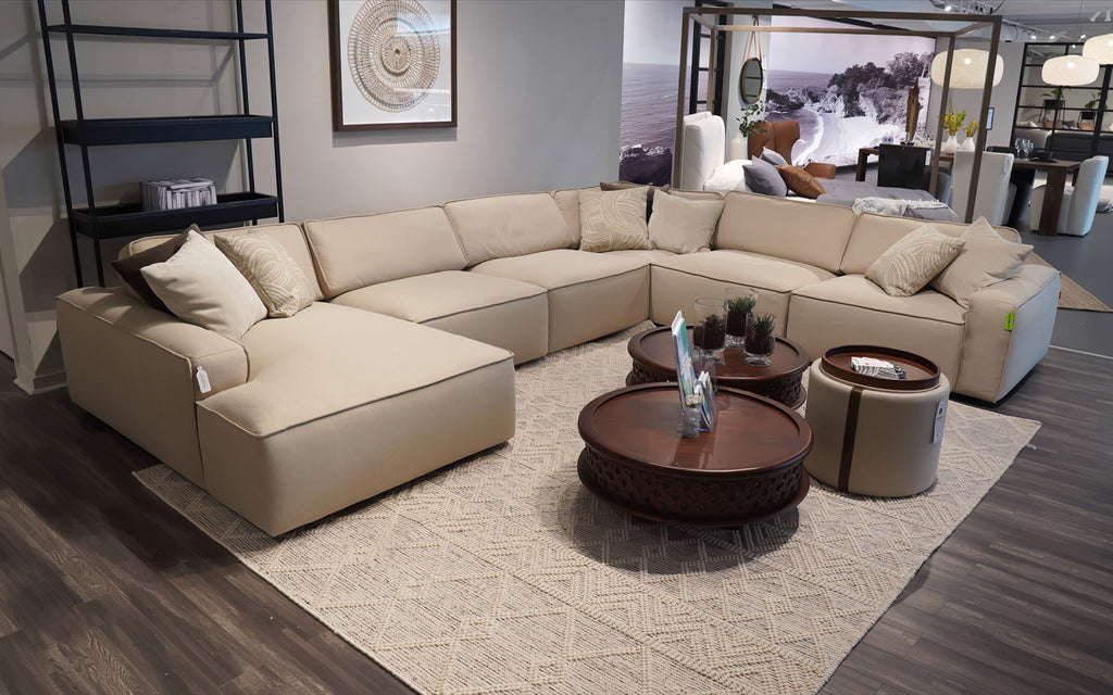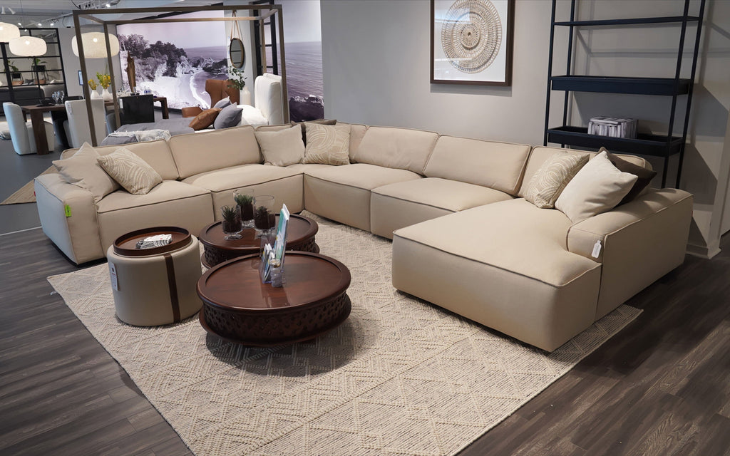 A perfect choice for any contemporary house design or modern home design. Sink into the softness that will make you feel as though you are on cloud 9. The plush cushions are made out of high density foam creating a unique box-type modular seating with chaise. Lounge about in total relaxation with the oversized chase. Good quality furniture for any contemporary style home or to match any contemporary home décor.