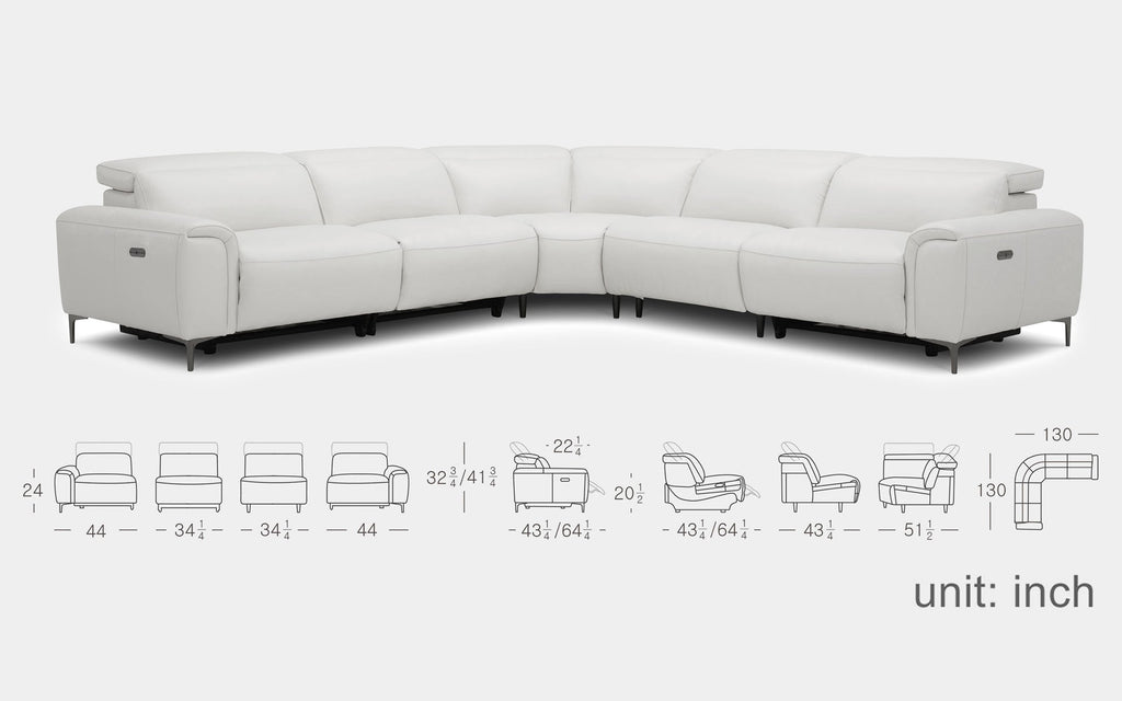Create your very own modern reclining sectional. It features 2 power recliners and 4 adjustable headrests. Relax blissfully with family and friends.