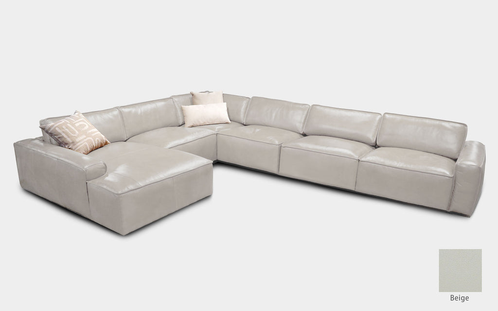 Just like flower sprouts and blooms, the Loto Modern Motion Sectional Sofa will change depending on the season and on the home. This one of a kind mid century modern leather sectional is both u shaped leather sectional and an easy-to-rearrange leather sofa bed. From a nice, rich caramel leather sofa to a more vibrant brown leather sofa. Choose your favorite color and match this customizable modular leather sofa to match your home. As a deep oversized sectional, this l shaped leather couch features a large leather chaise lounge chair, making this foot rest couch the perfect place to stretch out when relaxing.